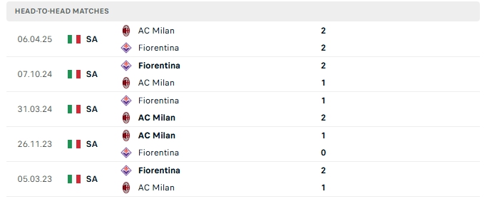Lịch sử đối đầu của AC Milan vs Fiorentina