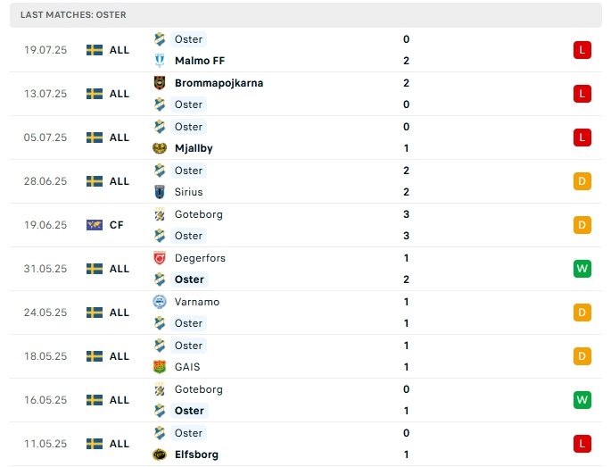 Osters sau 16 trận đấu hàng công mang về 12 bàn thắng cùng hàng thủ chơi tệ khi nhận đến 23 bàn thua, việc hàng thủ thi đấu thiếu chắc chắn khiến Osters đang gặp nhiều khó khăn, 2/3 trận xa nhà vừa qua của họ khép lại 90 phút từ 3 bàn trở lên và 4/5 trận xa nhà gần nhất họ đều để các đối thủ chọc thủng lưới.