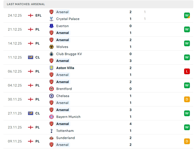 Arsenal sau 17 trận đấu họ mang về 12 chiến thắng, 3 hòa cùng 2 thất bại, có được 39 điểm và đang dẫn đầu trên BXH, Pháo thủ vừa có chiến thắng trước Crystal Palace ở đấu trường Liên đoàn Anh, còn ở sân chơi Ngoại Hạng Anh thì Pháo thủ có chiến thắng 1-0 trước Everton, Arsenal đang có phong độ ấn tượng với chuỗi 4 trận bất bại liên tiếp, họ cũng chỉ thua 1 ở 10 trận gần nhất, trên sân nhà ở 14 trận gần nhất họ đều bất bại với 13 chiến thắng.