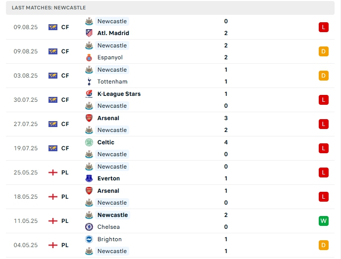 Bên kia sân, Newcastle chỉ có được 6 trận giao hữu trước thềm mùa giải mới, nhưng kết quả mà chích chòe thu về là đáng quên, họ chỉ có được 2 trận hòa và có đến 4 thất bại, phong độ của chích chòe là đáng quên họ trải qua chuỗi 8 trận liên tiếp không thắng, khi xa nhà Newcastle cũng đang chơi tệ với chuỗi 6 trận không thắng liên tiếp khi thua 5 trong 6 trận gần nhất.