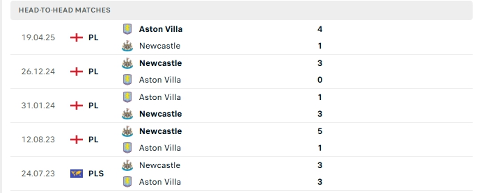 Những màn đụng độ giữa Aston Villa và Newcastle thường diễn ra hấp dẫn với nhiều bàn thắng được tạo ra, cả 5 trận gần nhất gặp nhau và 3/5 lần đón tiếp Newcastle trên sân nhà Aston Villa đều vượt mốc trên 3 bàn.
