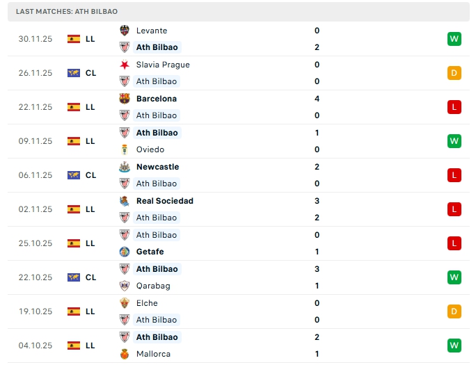 - Phong độ Athletic Bilbao