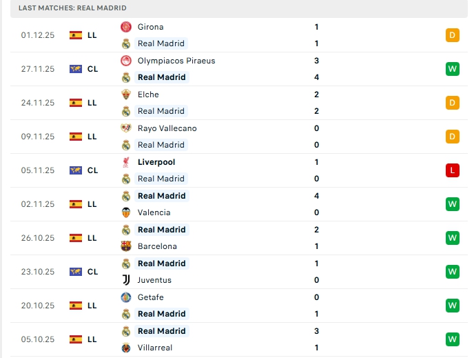 - Phong độ Real Madrid