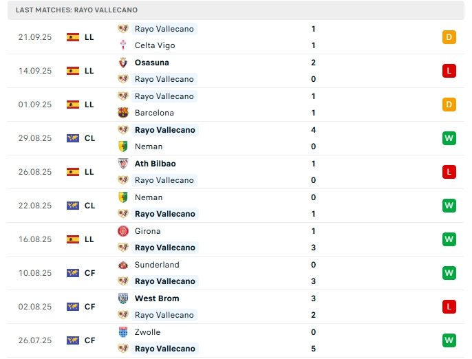 - Phong độ Rayo Vallecano