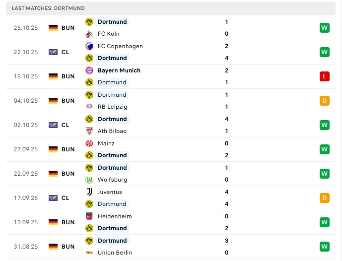 Dortmund sau 8 vòng đấu họ mang về 14 bàn thắng cùng hàng thủ nhận 6 bàn thua, 2/3 trận đấu đó khép lại 90 phút trên 3 bàn, Dortmund sở hữu hàng công tốt, khi thi đấu xa nhà ở 4/5 trận gần nhất khép lại vượt mốc 3 lần lưới rung.