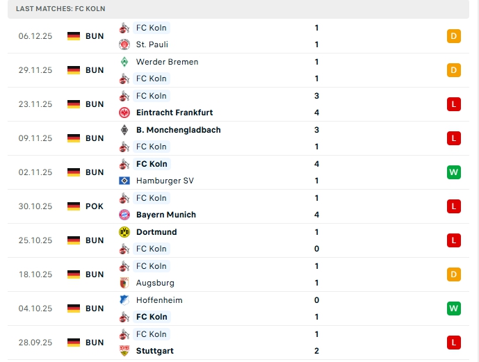 • Phong độ FC Koln