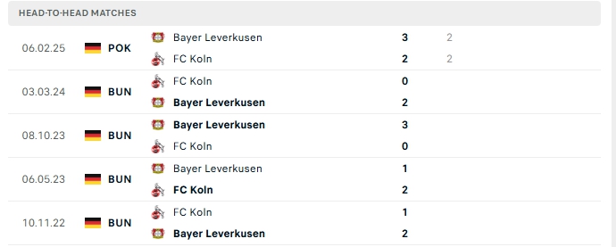 Lịch sử đối đầu của Bayer Leverkusen vs FC Koln