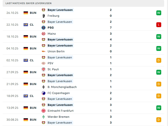 • Phong độ Bayer Leverkusen