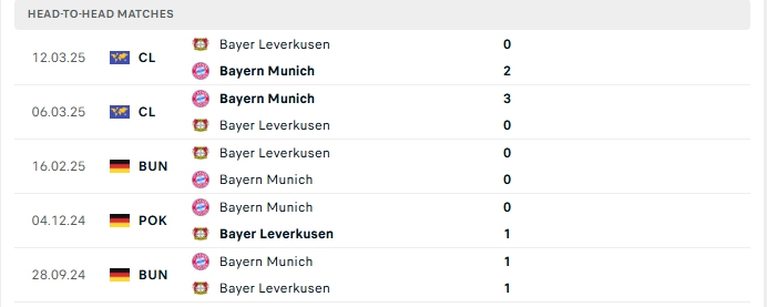 Lịch sử đối đầu của Bayern Munich vs Bayer Leverkusen