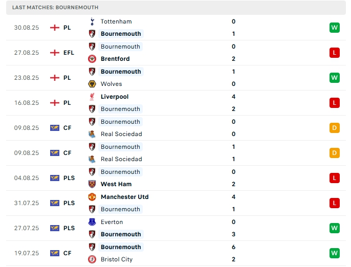 - Phong độ Bournemouth