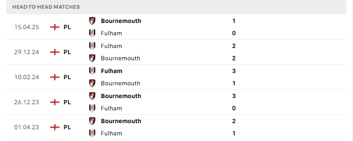 Những màn đụng độ giữa Bournemouth và Fulham thường diễn ra hấp dẫn với nhiều bàn thắng được tạo ra, cụ thể ở 4/5 lần gặp nhau gần nhất và 2/3 lần đón tiếp Fulham trên sân nhà của Bournemouth khép lại trên 3 bàn.