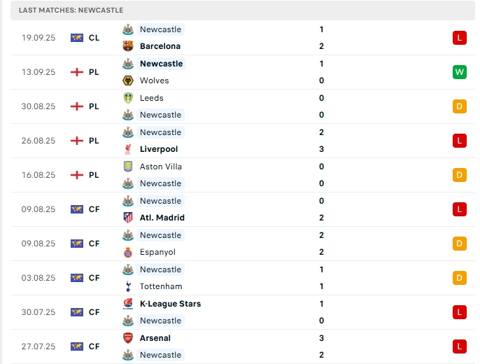 - Phong độ Newcastle