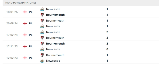 Lịch sử đối đầu của Bournemouth vs Newcastle