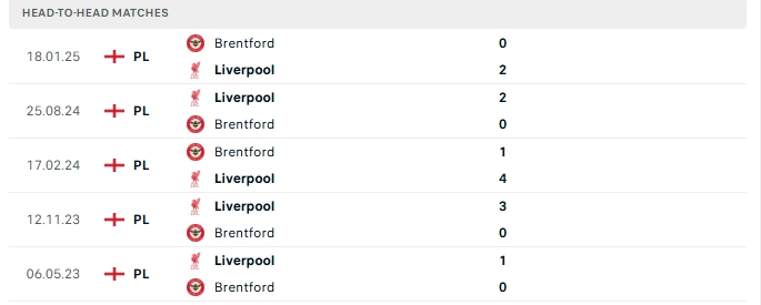 Những màn đụng độ giữa Brentford và Liverpool thường diễn ra hấp dẫn với nhiều bàn thắng được tạo ra, cụ thể ở 5 lần gặp nhau gần nhất của hai đội thì có đến 13 bàn thắng được tạo ra và 3/5 lần đón tiếp Liverpool trên sân của Brentford khép lại trên 3 bàn.