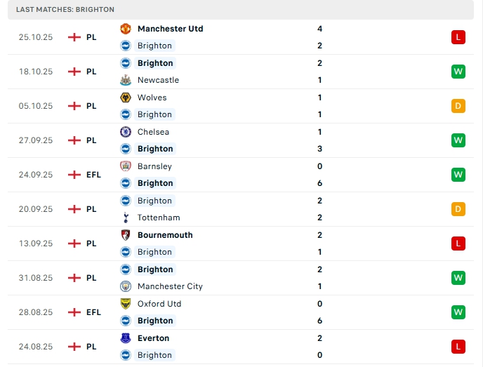 Phong độ gần đây Brighton vs Leeds Utd