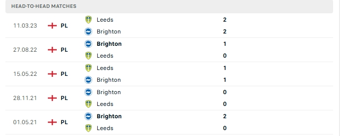 Lịch sử đối đầu của Brighton vs Leeds Utd