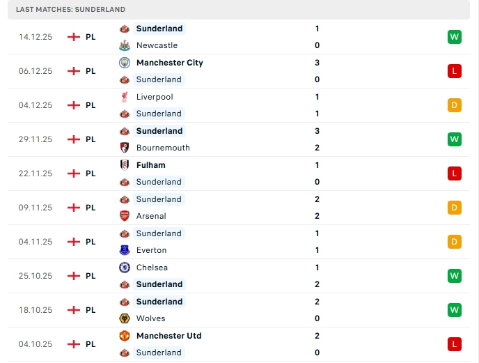 • Phong độ Sunderland