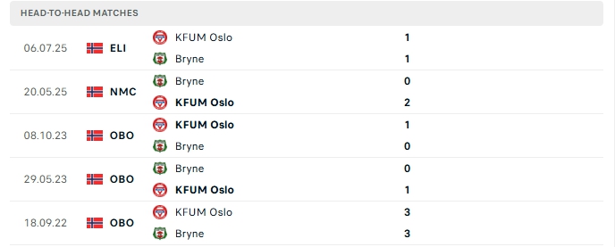 Lịch sử đối đầu của Bryne vs KFUM Oslo