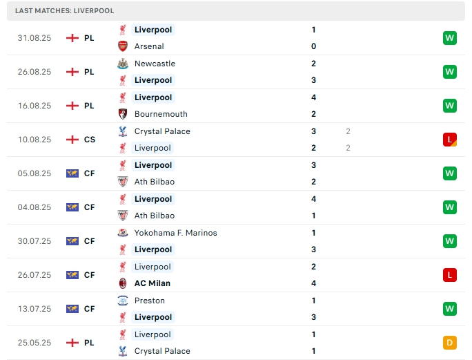 - Phong độ Liverpool
