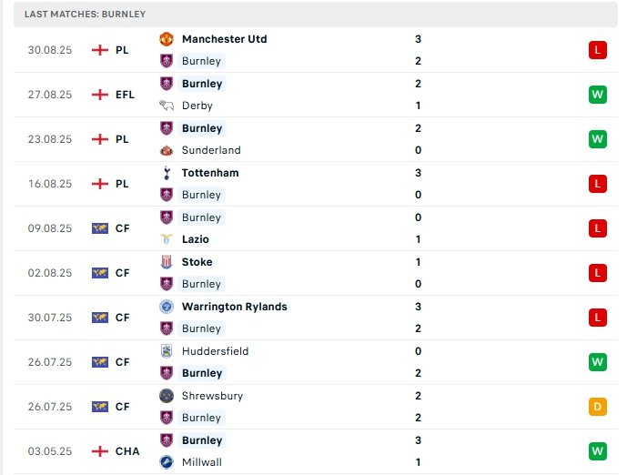- Phong độ Burnley