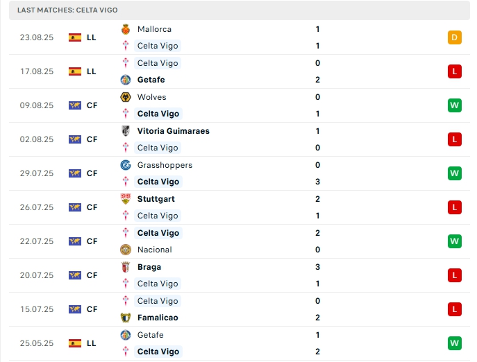 Celta Vigo sau 2 vòng đấu, hàng công của đội bóng này mang về 1 bàn thắng cùng hàng thủ nhận 3 bàn thua, việc hàng thủ chơi không tốt khiến họ đang gặp nhiều khó khăn, 4 trận gần nhất thì Celta Vigo đều phải nhận bàn thua, trên sân nhà của mình ở 4/5 trận vừa qua họ cũng để các đối thủ chọc thủng lưới.
