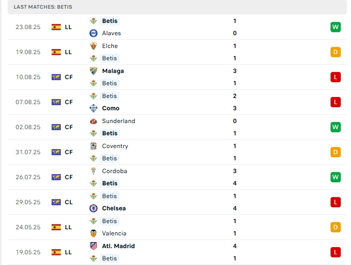 • Phong độ Betis