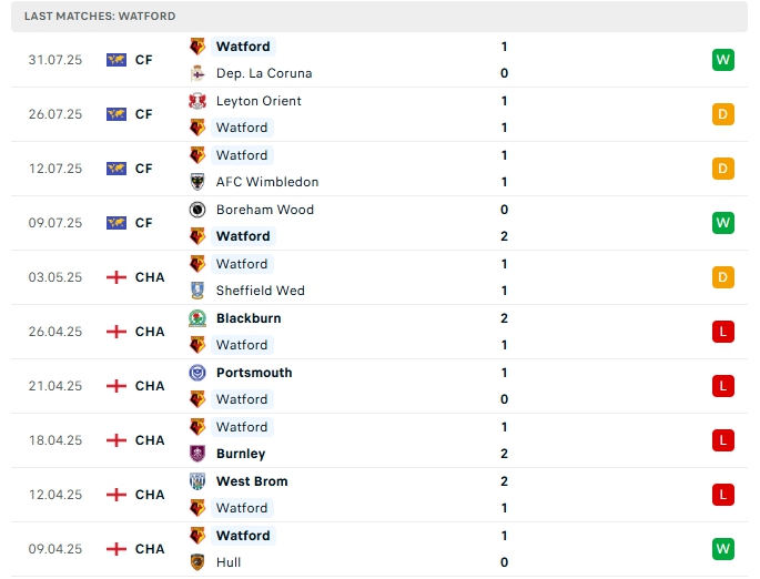 Watford khép lại mùa giải vừa qua với vị trí thứ 14 trên BXH, một thành tích không mấy khả quan, họ đang đặt nhiều quyết tâm cho mùa giải năm nay, để chuẩn bị cho mùa giải mới Watford có cho mình 4 trận giao hữu với thành tích bất bại, hàng công có được 5 bàn thắng cùng hàng thủ nhận 2 bàn thua, 3/4 trận đấu đó Watford đều có bàn thắng vào lưới đối thủ, dù vậy 2/3 trận gần nhất hàng thủ của Watford không giữ sạch lưới.