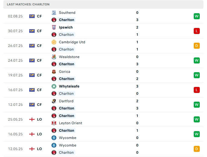 Charlton Athletic khép lại mùa giải vừa qua với vị trí thứ 4 ở sân chơi hạng 2 Anh và có vé thăng hạng lên Hạng Nhất Anh, để chuẩn bị mùa giải mới họ có cho mình những trận đấu giao hữu, trong đó hàng công mang về 13 bàn thắng cùng hàng thủ nhận 8 bàn thua, 5/7 trận đấu đó khép lại 90 phút từ 3 bàn trở lên, 3/5 trận gần nhất trên sân nhà của Charlton Athletic cũng khép lại chạm mốc 3 bàn.