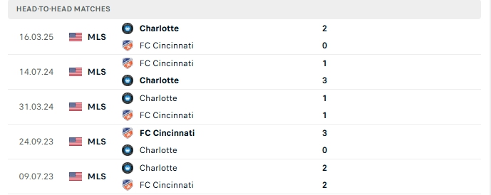 Lịch sử đối đầu của Cincinnati vs Charlotte FC