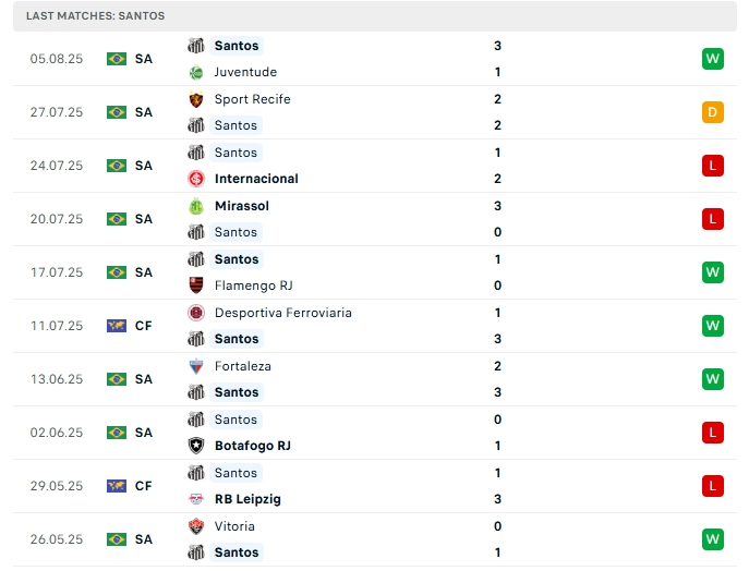 - Phong độ Santos