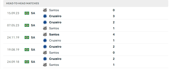 Những màn đụng độ giữa Cruzeiro và Santos thường diễn ra hấp dẫn với nhiều bàn thắng được tạo ra, 4/5 lần gặp nhau gần nhất của hai đội và 3/5 lần đón tiếp Santos trên sân của Cruzeiro đều vượt mốc trên 2 bàn.
