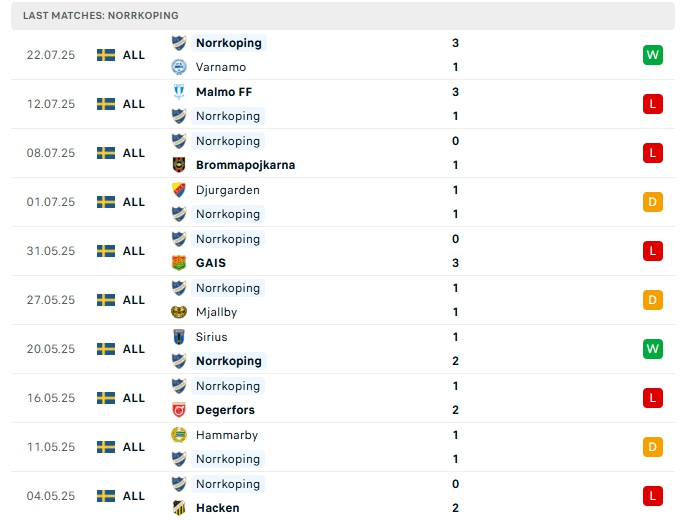 Phong độ gần đây Degerfors IF vs Norrkoping