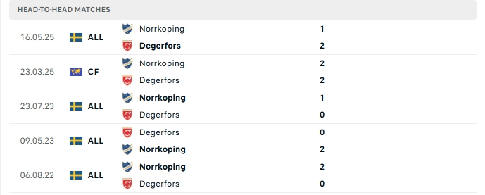 2 lần đụng độ gần nhất của Degerfors IF và Norrkoping khép lại 90 phút từ 3 bàn trở lên, 3/5 lần đón tiếp Norrkoping trên sân của Degerfors IF cũng khép lại với 3 lần lưới rung.