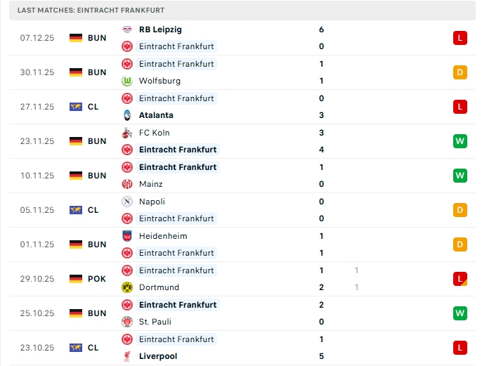 - Phong độ Eintracht Frankfurt
