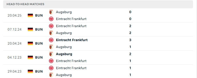 Lịch sử đối đầu của Eintracht Frankfurt vs Augsburg