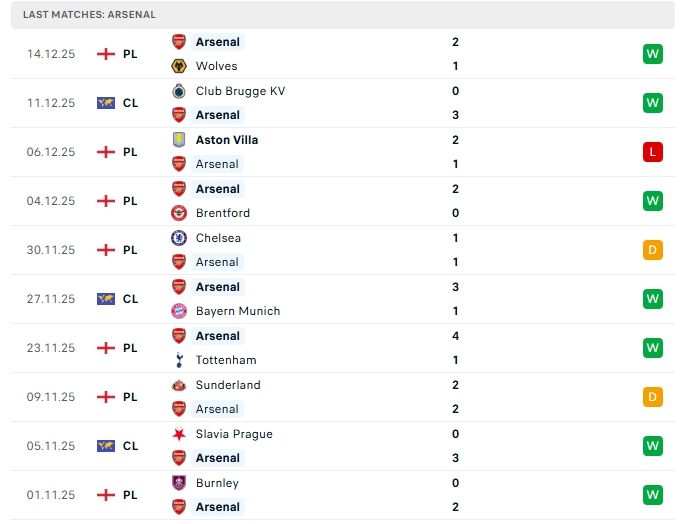- Phong độ Arsenal
