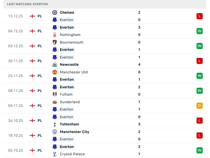 - Phong độ Everton