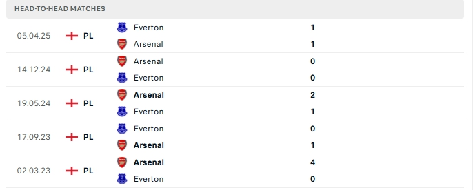 Những màn đụng độ giữa Everton và Arsenal thường diễn ra chặt chẻ với ít bàn thắng được tạo ra, cụ thể ở 3/5 lần gặp nhau gần nhất và 3/5 lần đón tiếp Arsenal trên sân của Everton khép lại không quá 2 bàn thắng.