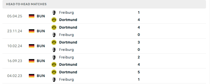 Lịch sử đối đầu của Freiburg vs Dortmund
