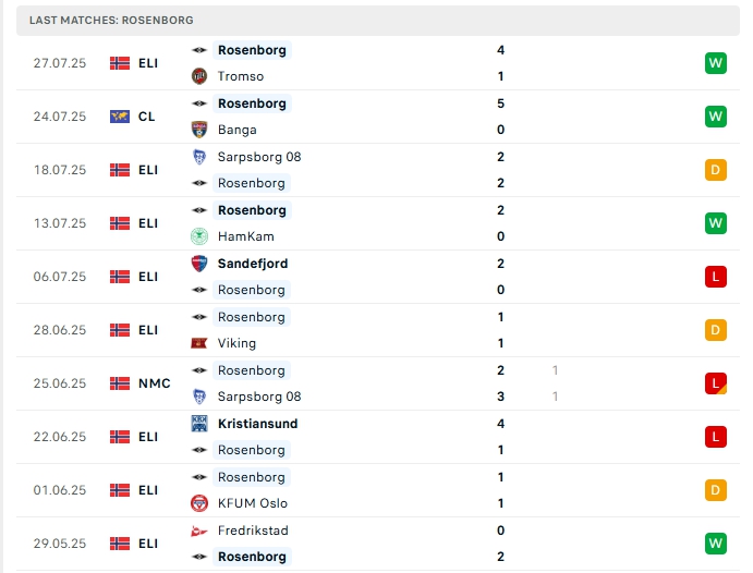 - Phong độ Rosenborg