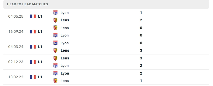 Lịch sử đối đầu của Lens vs Lyon