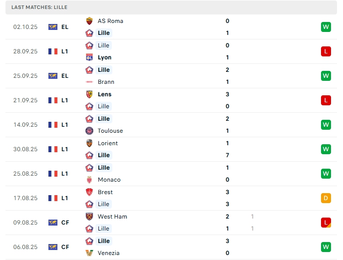 Phong độ gần đây Lille vs PSG