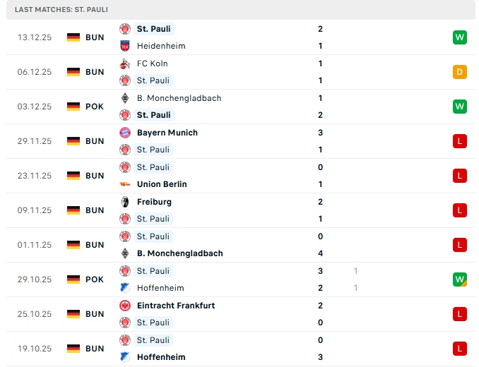 St. Pauli sau 14 trận đấu , hàng công chơi tốt khi mang về 13 bàn thắng, cùng hàng thủ nhận 26 bàn thua, hàng thủ cũng đang chơi tệ, St. Pauli thường nhập cuộc với số đông cầu thủ bên phần sân nhà, sẻ một trận đấu mà St. Pauli sẻ chơi phòng ngự khi phải làm khách.