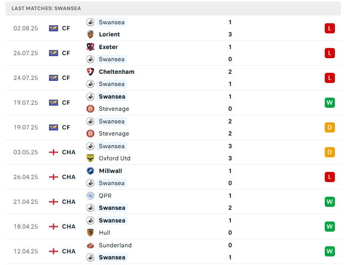 - Phong độ Swansea City