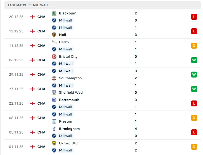 • Phong độ Millwall