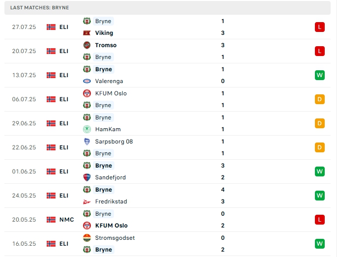 Bryne sau 15 trận đấu có cho mình 21 bàn thắng cùng hàng thủ nhận 27 bàn thua, 2 trận đấu gần nhất của Bryne khép lại 90 phút từ 3 bàn thắng trở lên,  4/5 trận xa nhà của họ cũng bị đối thủ chọc thủng lưới, việc hàng thủ đang chơi không tốt khiến Bryne đang gặp nhiều khó khăn.