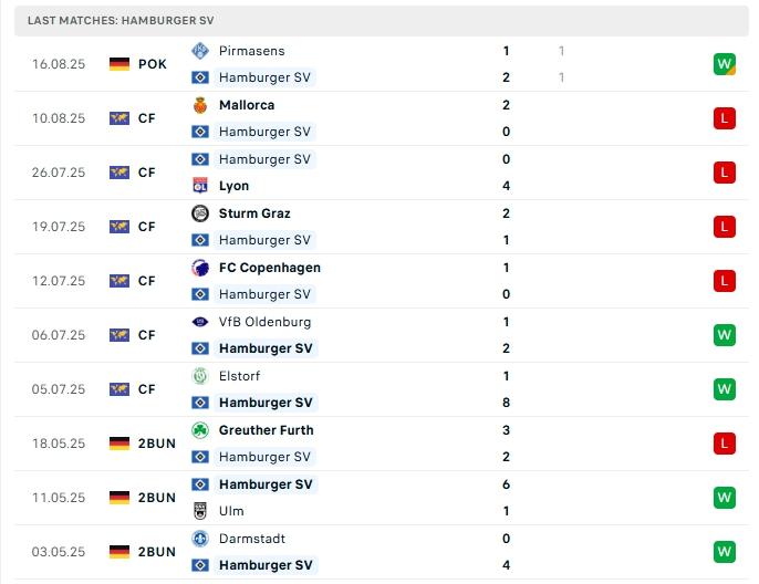 Hamburger có cho mình 5 trận giao hữu, trong đó hàng công mang về 11 bàn thắng, cùng hàng thủ chơi thiếu chắc chắn khi nhận 11 bàn thua, 5/6 trận đấu đó khép lại 90 phút trên 3 bàn thắng, khi thi đấu xa nhà ở 3/5 trận gần nhất của họ cũng chạm mốc 3 bàn.