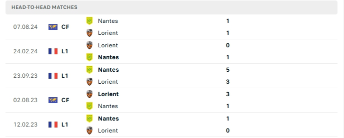 Những màn đụng độ giữa Nantes và Lorient thường diễn ra chặt chẻ với ít bàn thắng được tạo ra, cụ thể ở 3/5 gặp nhau của hai đội và 3/5 trận gần nhất đón tiếp Lorient trên sân của Nantes khép lại không quá 2 bàn.