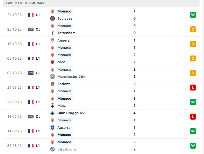 Monaco sau 9 vòng đấu đầu tiên, hàng công đội bóng này chơi ấn tượng khi mang về 18 bàn thắng, cùng hàng thủ thiếu chắc chắn khi nhận 13 bàn thua, 3/5 trận gần nhất ở đấu trường Ligue 1 của Monaco khép lại trên 3 bàn thắng, khi thi đấu xa nhà ở 3/5 trận gần nhất cũng có kết quả tương tự.