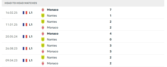 Lịch sử đối đầu của Nantes vs Monaco